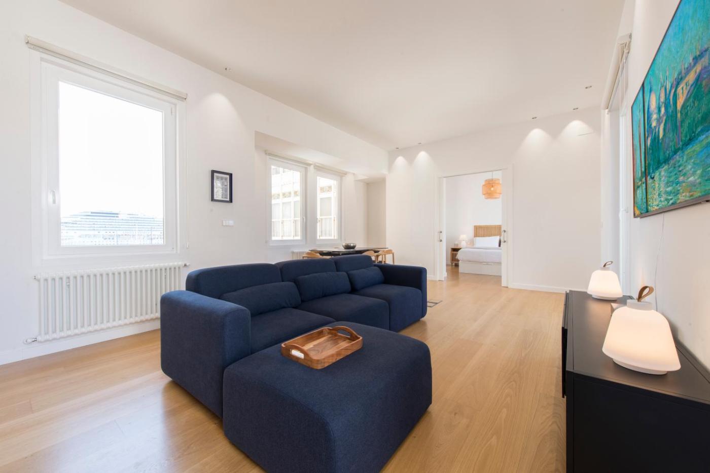 Two-Bedroom Apartment. This spacious apartment comes with a kitchen, a seating area, 2 separate bedrooms and 2 bathrooms with a shower and a hairdryer. In the fully equipped kitchen, guests will find a refrigerator, a dishwasher, kitchenware and an oven. The apartment features a washing machine, soundproof walls, a tea and coffee maker, a flat-screen TV with streaming services, as well as sea views. The unit has 2 beds.