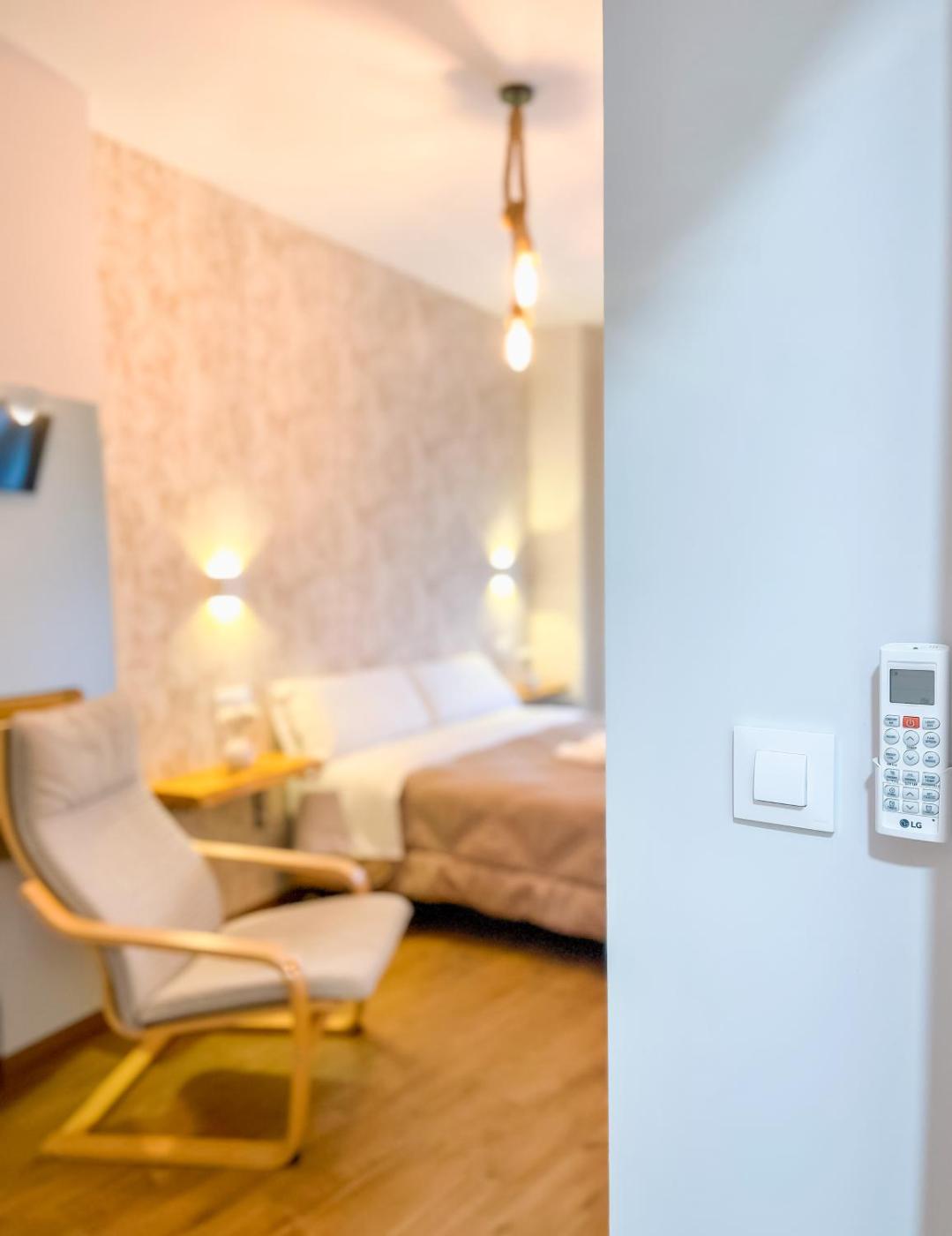 Double Room with Private Bathroom. The double room provides air conditioning, soundproof walls, as well as a private bathroom featuring a shower and a hairdryer. The double room offers a flat-screen TV, a wardrobe, a tiled floor and heating. The unit offers 2 beds. ;