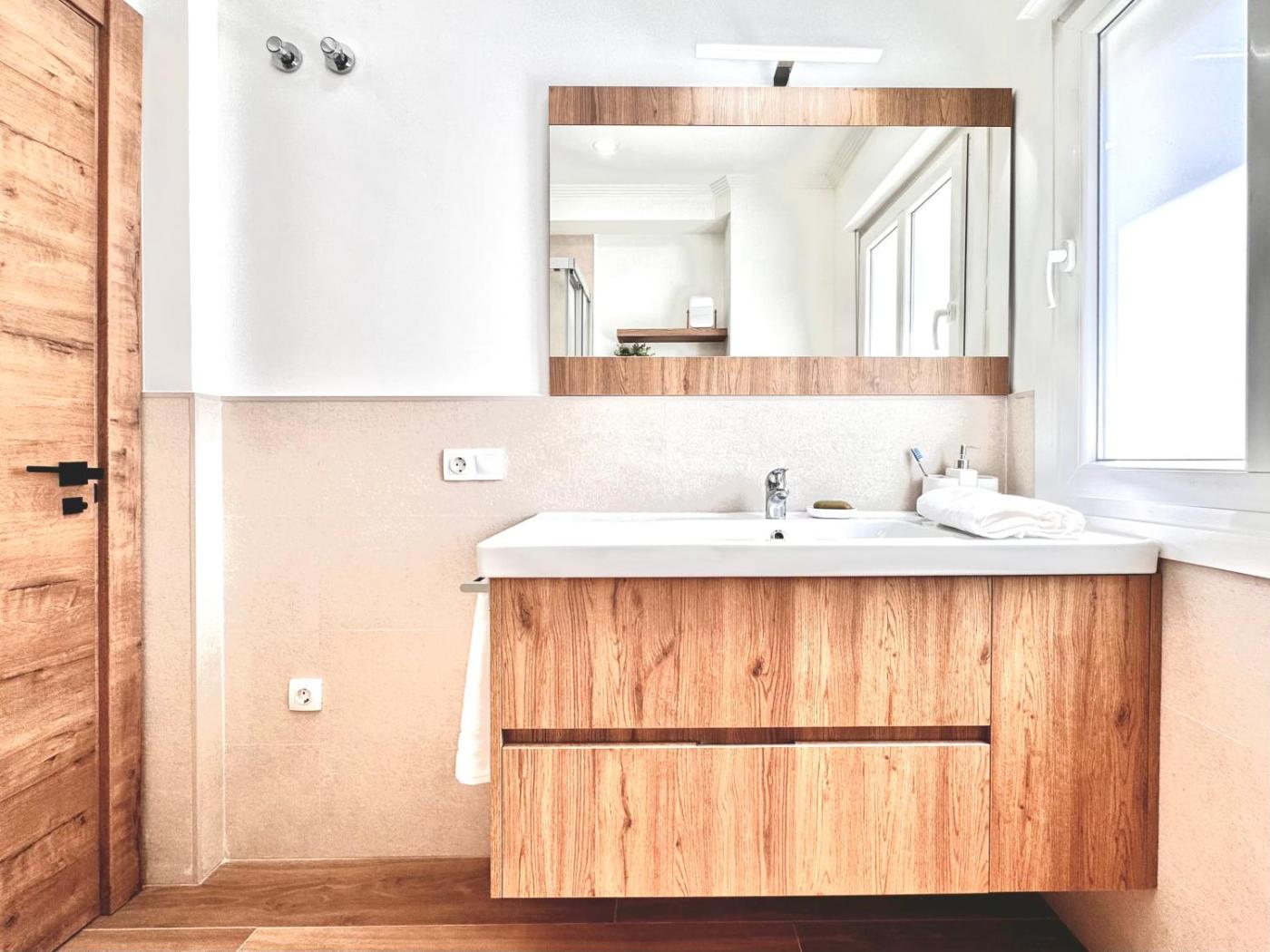 Three-Bedroom Apartment. This spacious apartment comprises 1 living room, 3 separate bedrooms and 2 bathrooms with a shower and free toiletries. The well-fitted kitchen has a stovetop, a refrigerator, a dishwasher and kitchenware. The apartment features parquet floors, a seating area with a flat-screen TV, a washing machine, a private entrance as well as sea views. The unit offers 4 beds.