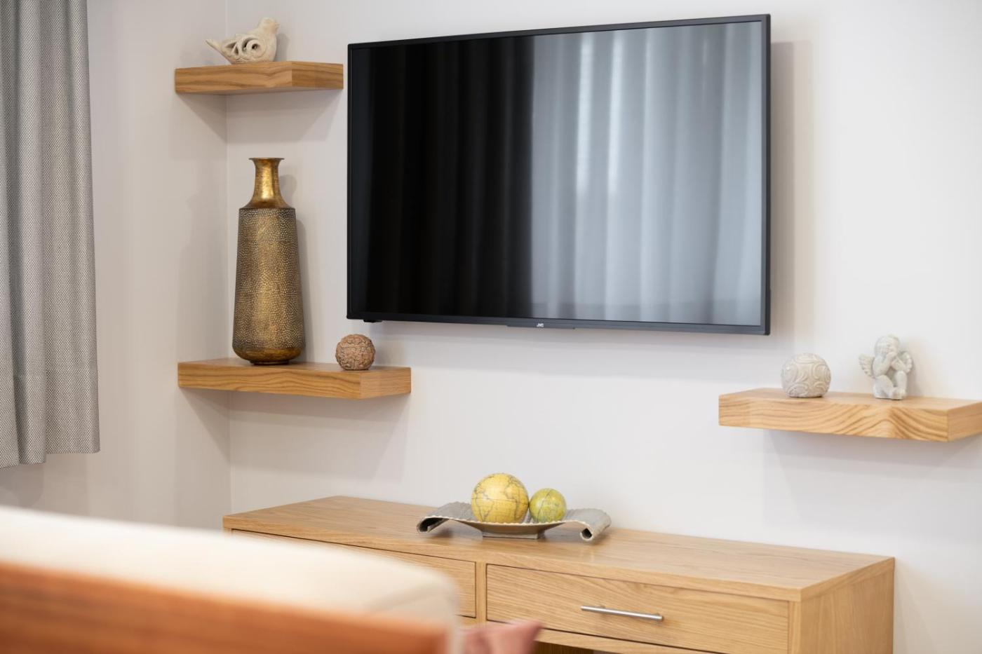 Two-Bedroom House. The holiday home features 2 bedrooms and 2 bathrooms with a walk-in shower and free toiletries. Guests will find a refrigerator, a dishwasher, kitchenware and an oven in the well-fitted kitchen. The holiday home also offers a barbecue. Featuring a patio, this holiday home also provides a dining area, a wardrobe and a flat-screen TV. The unit offers 3 beds.