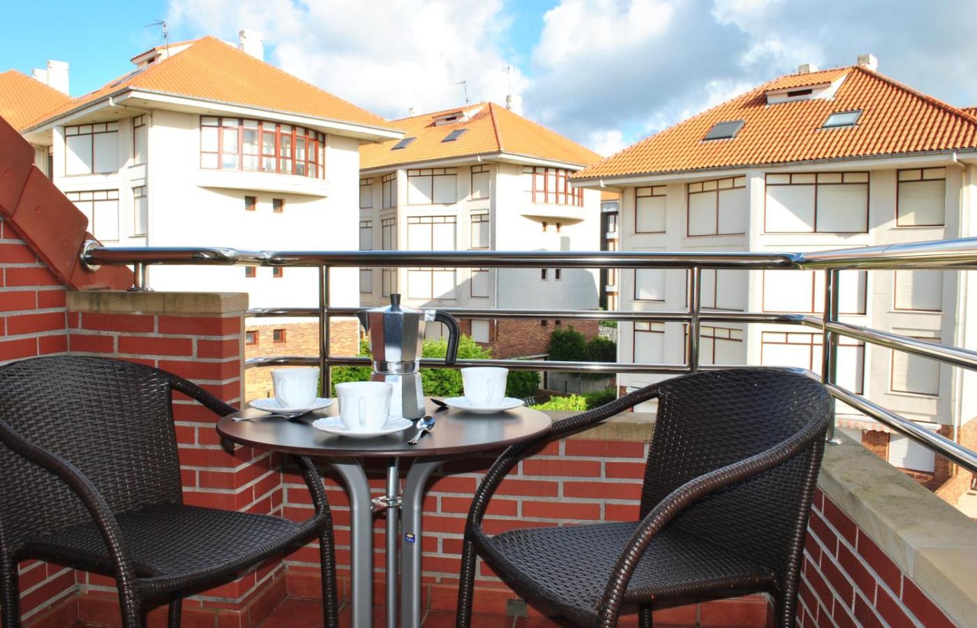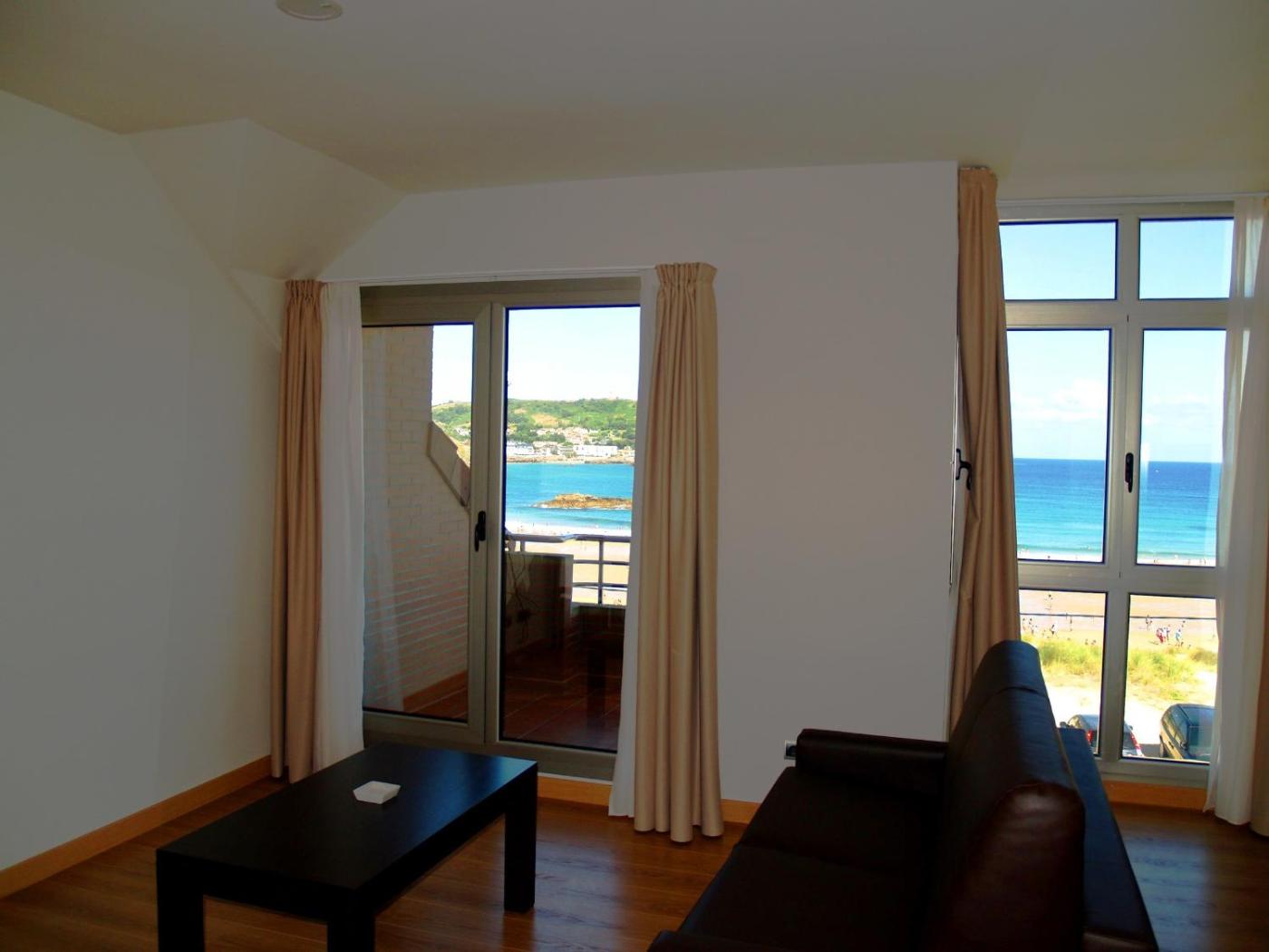 One-Bedroom Apartment with Sea View and Terrace (4 Adults). This modern apartment has a double bedroom and a double sofa bed in the lounge. It includes 2 flat-screen TVs. There is a private bathroom with a bathtub and hairdryer, a well-equipped kitchenette and a terrace with views of Ris Beach. Free WiFi is available. Bed linen and towels are included. ;