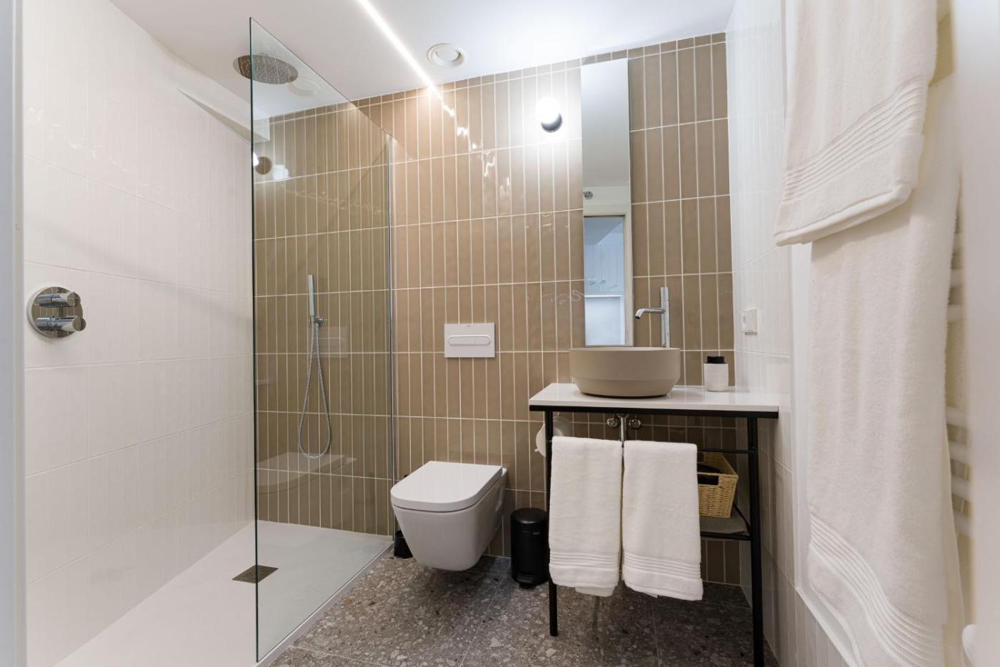 Two-Bedroom Apartment. Featuring a private entrance, this apartment also consists of 2 bedrooms, a seating area and 1 bathroom with a shower and a hairdryer. Guests can make meals in the kitchen that is equipped with a refrigerator, a dishwasher, kitchenware and an oven. The apartment provides a flat-screen TV with cable channels, a washing machine, soundproof walls, a tea and coffee maker as well as a quiet street view. The unit offers 2 beds. ;