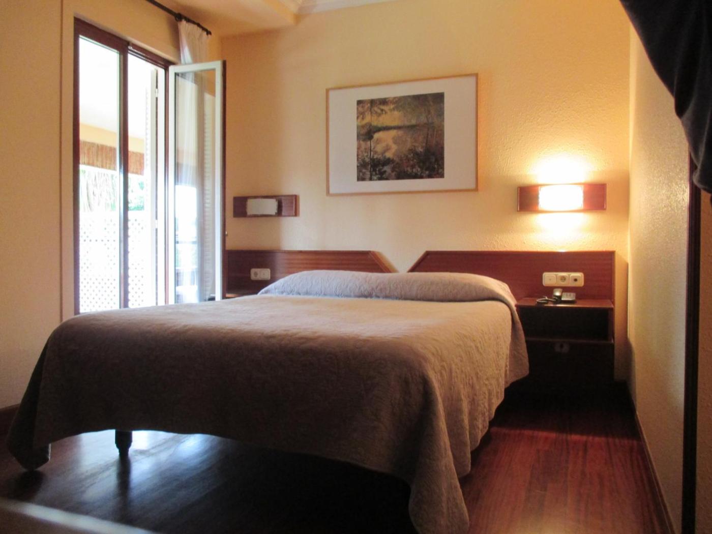 The rooms have large windows and some have balconies that look onto the garden or Adarra Mountain. Each one has a TV and private bathroom that includes a bath tub.