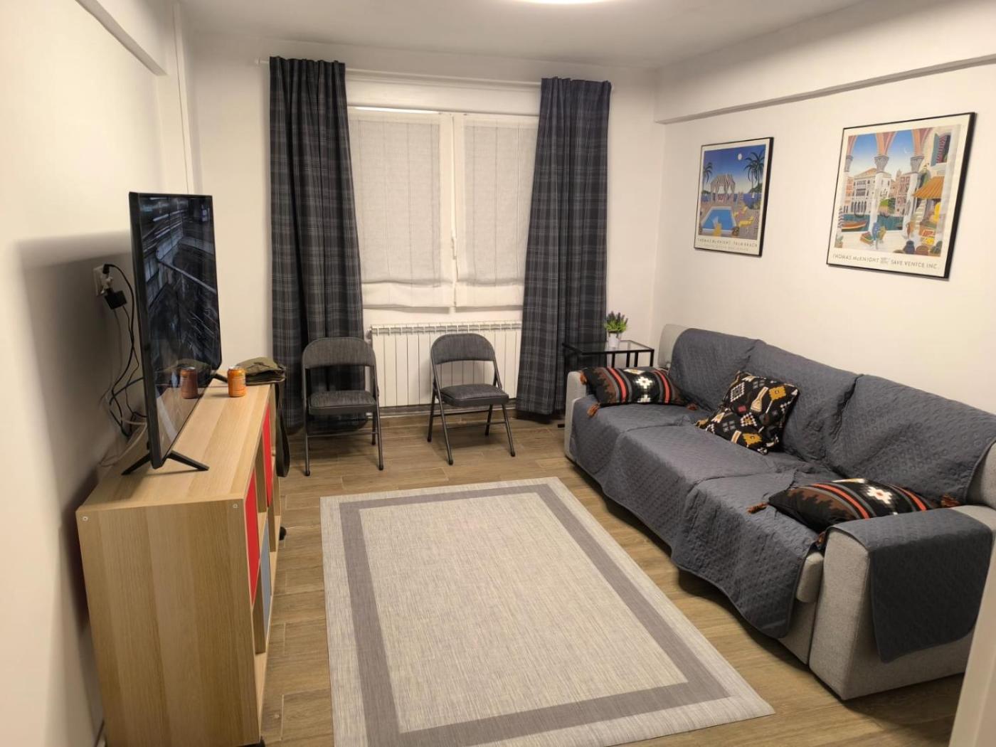 Two-Bedroom Apartment. This spacious apartment comprises 1 living room, 2 separate bedrooms and 1 bathroom with a walk-in shower and a hairdryer. Guests can make meals in the kitchen that comes with a refrigerator, kitchenware, an oven and a microwave. The apartment provides a flat-screen TV, a washing machine, a coffee machine, heating as well as city views. The unit offers 4 beds.